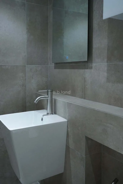 벽 타일과 이어져 보이기 때문에 시각적으로도 이질감 없이 고급스럽게 보인다. 또한 벽이 앞으로 나오기 때문에 세수할 때 벽에서 튀어나온 수납장에 머리를 부딪힐 위험을 줄여준다.